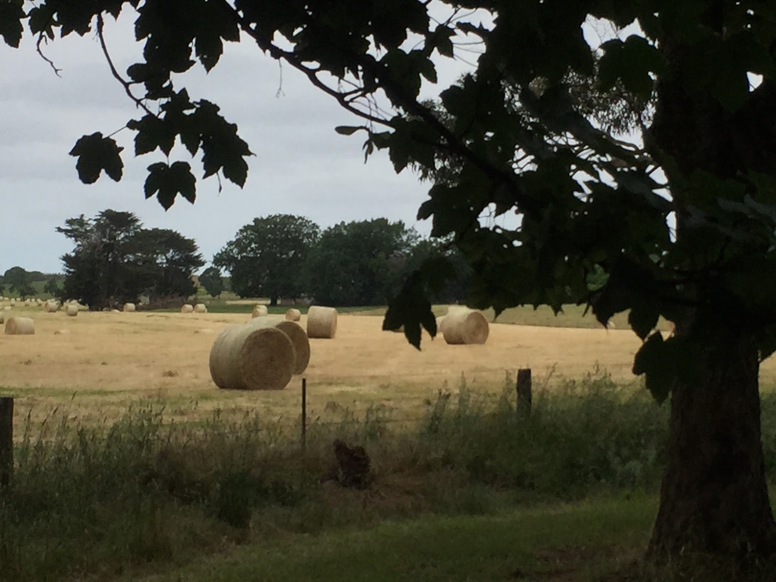 Last winter the rains came and during spring, the grass grew. The farmers harvested the grass for sale however there is still a glut of hay bales in the area. The hay bales you see in this photo are possibly still sitting in the paddock. Seeing the hay bales on the rolling hills of Trentham's surrounding area remind me of riding the bike in hills of Tuscany in 2014. The difference is that there are no walled hilltop villages.